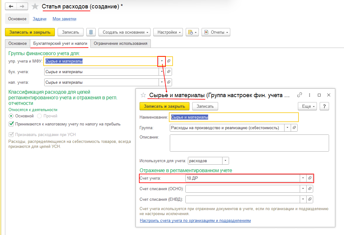 И далее заполняем все необходимые реквизиты, выбираем счет учета 10.ДР.